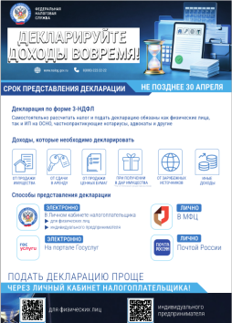 С 1 января стартовала Декларационная кампания-2026 по декларированию доходов физических лиц, полученных в 2025 году. Отчитаться о доходах и представить декларацию по форме 3-НДФЛ необходимо не позднее 30.04.2026 г.