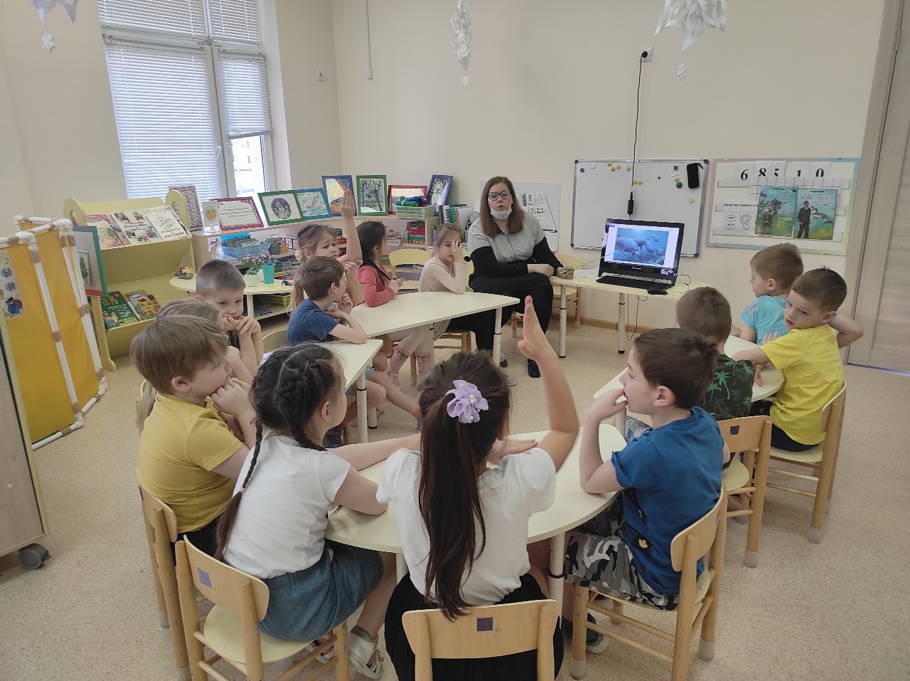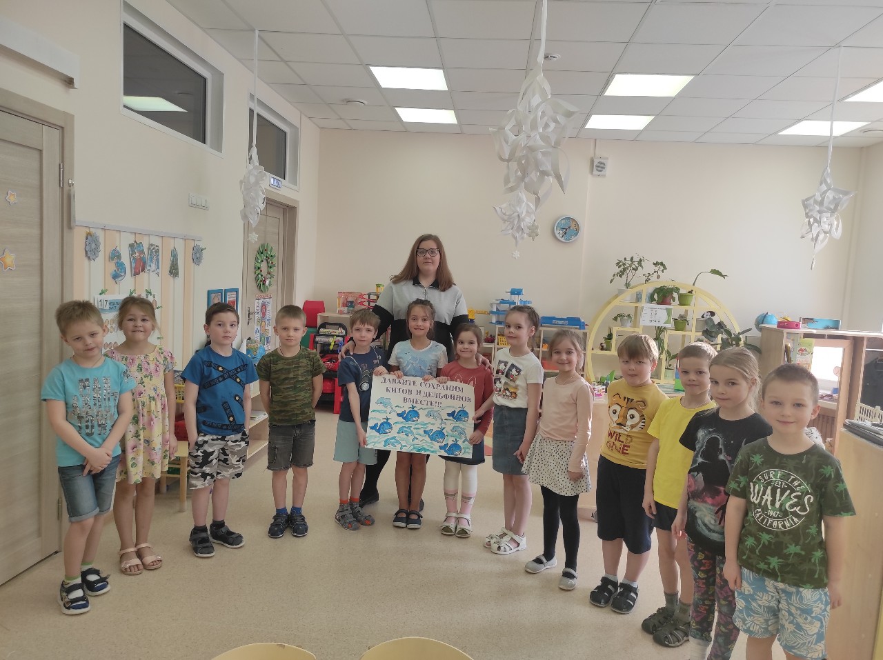 В ходе тематического дня дети изучили всех живых существ и причины, по которым им грозит вымирание, посмотрели развивающее видео о морских обитателях, послушали как поют киты и закрепили полученные знания.