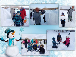 Хочется выразить благодарность семьям Шиловых, Трошкиных, Шарабановых за участие в создании снежной постройки и семье Зябловых за участие в семейных состязаниях по санлестболу.