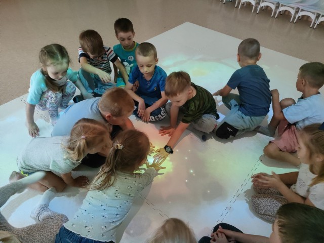 Дети весело прыгали, бегали и взаимодействовали с виртуальным миром прямо на полу, развивая координацию движений, внимательность и быстроту реакции.