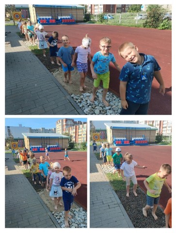 Наши ребята активно проводят лето с пользой для здоровья! ? Солнечные ванны помогают накопить витамин D и зарядиться энергией солнца Воздушные процедуры дарят бодрость и свежесть каждому дню Оздоровительные обливания закаляют организм и повышают сопротивляемость болезням Хождение по массажным дорожкам улучшает кровообращение и укрепляет стопы